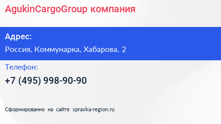 AgukinCargoGroup, компания по адресу Торгово-развлекательный комплекс "Новомосковский", 2, улица Хабарова, Филимонковский район, Московский, Москва, Центральный федеральный округ, 142784, Россия в дальнейшем Организация, размещена в следующих категориях: