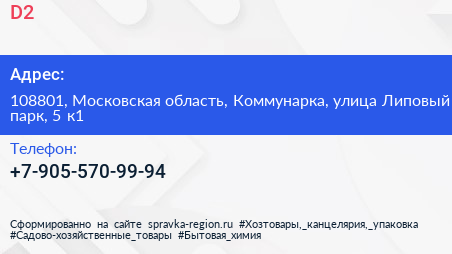 D2 по адресу 108801, Московская область, Коммунарка, улица Липовый парк, 5 к1 в дальнейшем Организация, размещена в следующих категориях: