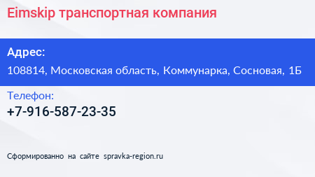 Eimskip, транспортная компания по адресу 108814, Московская область, Коммунарка, Сосновая, 1Б в дальнейшем Организация, размещена в следующих категориях:
