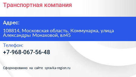Транспортная компания по адресу 108814, Московская область, Коммунарка, улица Александры Монаховой, вл45 в дальнейшем Организация, размещена в следующих категориях: