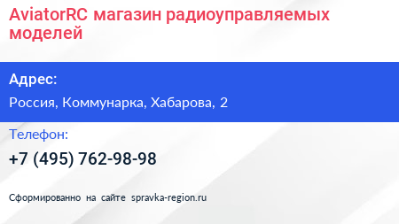 AviatorRC, магазин радиоуправляемых моделей по адресу Торгово-развлекательный комплекс "Новомосковский", 2, улица Хабарова, Филимонковский район, Московский, Москва, Центральный федеральный округ, 142784, Россия в дальнейшем Организация, размещена в следующих категориях: