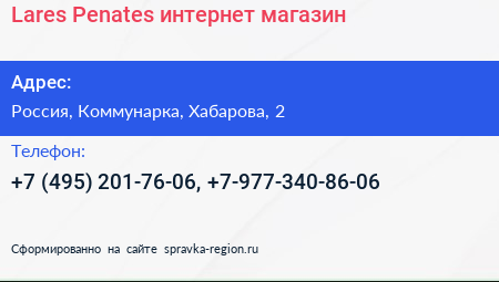 Lares & Penates, интернет-магазин по адресу Торгово-развлекательный комплекс "Новомосковский", 2, улица Хабарова, Филимонковский район, Московский, Москва, Центральный федеральный округ, 142784, Россия в дальнейшем Организация, размещена в следующих категориях:
