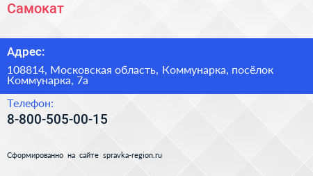 Самокат по адресу 108814, Московская область, Коммунарка, посёлок Коммунарка, 7а в дальнейшем Организация, размещена в следующих категориях: