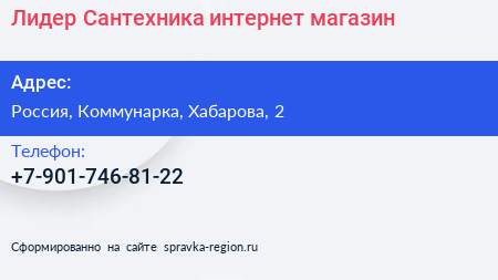 Лидер Сантехника, интернет-магазин по адресу Торгово-развлекательный комплекс "Новомосковский", 2, улица Хабарова, Филимонковский район, Московский, Москва, Центральный федеральный округ, 142784, Россия в дальнейшем Организация, размещена в следующих категориях: