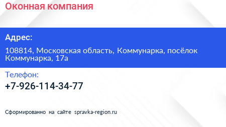 Оконная компания по адресу 108814, Московская область, Коммунарка, посёлок Коммунарка, 17а в дальнейшем Организация, размещена в следующих категориях: