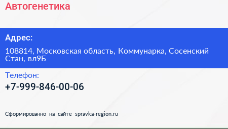 Автогенетика по адресу 108814, Московская область, Коммунарка, Сосенский Стан, вл9Б в дальнейшем Организация, размещена в следующих категориях: