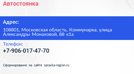 Автостоянка по адресу 108801, Московская область, Коммунарка, улица Александры Монаховой, 88 к1а в дальнейшем Организация, размещена в следующих категориях: