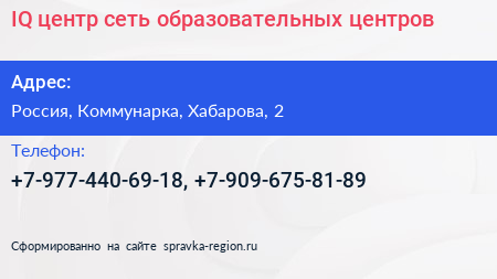 IQ-центр, сеть образовательных центров по адресу Торгово-развлекательный комплекс "Новомосковский", 2, улица Хабарова, Филимонковский район, Московский, Москва, Центральный федеральный округ, 142784, Россия в дальнейшем Организация, размещена в следующих категориях: