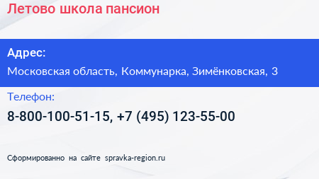 Летово, школа-пансион по адресу Московская область, Коммунарка, Зимёнковская, 3 в дальнейшем Организация, размещена в следующих категориях: