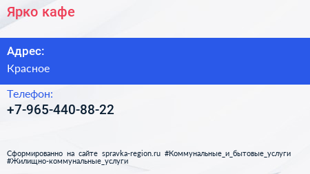 Ярко, кафе по адресу Красное в дальнейшем Организация, размещена в следующих категориях: