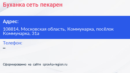 Буханка, сеть пекарен по адресу 108814, Московская область, Коммунарка, посёлок Коммунарка, 31а в дальнейшем Организация, размещена в следующих категориях: