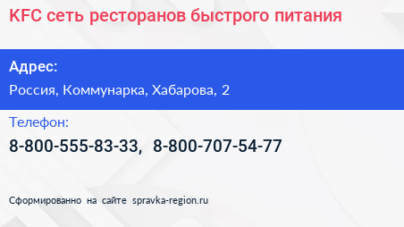 KFC, сеть ресторанов быстрого питания по адресу Торгово-развлекательный комплекс "Новомосковский", 2, улица Хабарова, Филимонковский район, Московский, Москва, Центральный федеральный округ, 142784, Россия в дальнейшем Организация, размещена в следующих категориях: