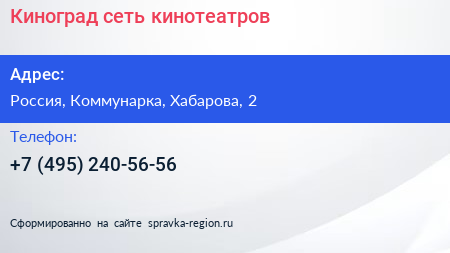 Киноград, сеть кинотеатров по адресу Торгово-развлекательный комплекс "Новомосковский", 2, улица Хабарова, Филимонковский район, Московский, Москва, Центральный федеральный округ, 142784, Россия в дальнейшем Организация, размещена в следующих категориях: