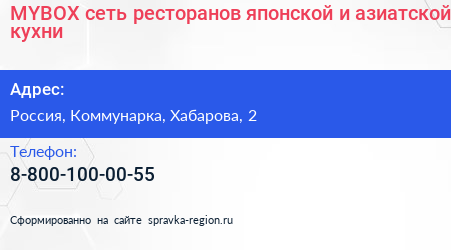 MYBOX, сеть ресторанов японской и азиатской кухни по адресу Торгово-развлекательный комплекс "Новомосковский", 2, улица Хабарова, Филимонковский район, Московский, Москва, Центральный федеральный округ, 142784, Россия в дальнейшем Организация, размещена в следующих категориях:
