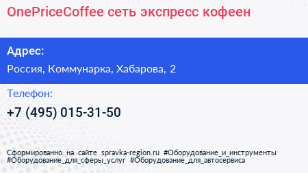 OnePriceCoffee, сеть экспресс-кофеен по адресу Торгово-развлекательный комплекс "Новомосковский", 2, улица Хабарова, Филимонковский район, Московский, Москва, Центральный федеральный округ, 142784, Россия в дальнейшем Организация, размещена в следующих категориях:
