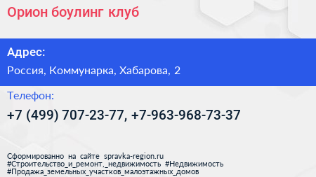 Орион, боулинг-клуб по адресу Торгово-развлекательный комплекс "Новомосковский", 2, улица Хабарова, Филимонковский район, Московский, Москва, Центральный федеральный округ, 142784, Россия в дальнейшем Организация, размещена в следующих категориях: