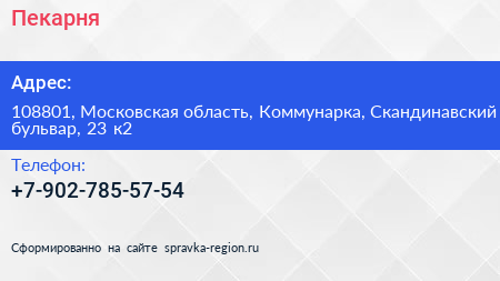 Пекарня по адресу 108801, Московская область, Коммунарка, Скандинавский бульвар, 23 к2 в дальнейшем Организация, размещена в следующих категориях: