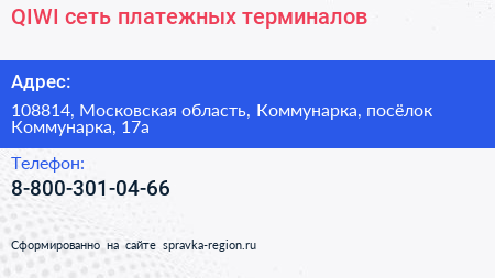 QIWI, сеть платежных терминалов по адресу 108814, Московская область, Коммунарка, посёлок Коммунарка, 17а в дальнейшем Организация, размещена в следующих категориях: