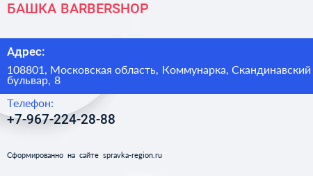 БАШКА BARBERSHOP по адресу 108801, Московская область, Коммунарка, Скандинавский бульвар, 8 в дальнейшем Организация, размещена в следующих категориях: