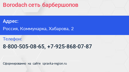 Borodach, сеть барбершопов по адресу Торгово-развлекательный комплекс "Новомосковский", 2, улица Хабарова, Филимонковский район, Московский, Москва, Центральный федеральный округ, 142784, Россия в дальнейшем Организация, размещена в следующих категориях: