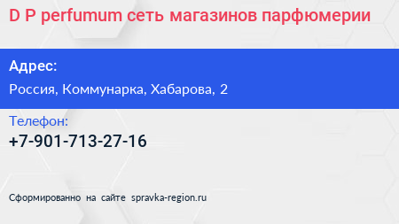 D & P perfumum, сеть магазинов парфюмерии по адресу Торгово-развлекательный комплекс "Новомосковский", 2, улица Хабарова, Филимонковский район, Московский, Москва, Центральный федеральный округ, 142784, Россия в дальнейшем Организация, размещена в следующих категориях: