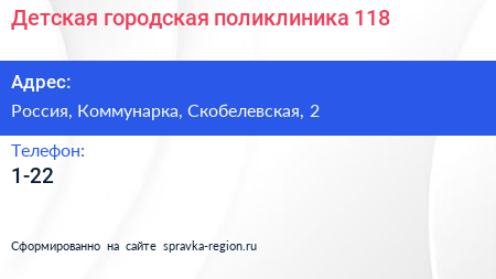 Детская городская поликлиника №118 по адресу Детская городская поликлиника № 118, филиал № 1, 2, Скобелевская улица, Гавриково, район Южное Бутово, Москва, Центральный федеральный округ, 117642, Россия в дальнейшем Организация, размещена в следующих категориях: