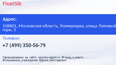 FloatSib по адресу 108801, Московская область, Коммунарка, улица Липовый парк, 3 в дальнейшем Организация, размещена в следующих категориях:
