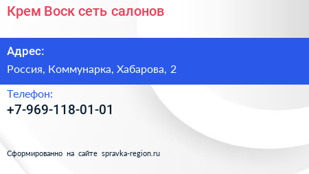 Крем Воск, сеть салонов по адресу Торгово-развлекательный комплекс "Новомосковский", 2, улица Хабарова, Филимонковский район, Московский, Москва, Центральный федеральный округ, 142784, Россия в дальнейшем Организация, размещена в следующих категориях: