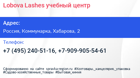 Lobova Lashes, учебный центр по адресу Торгово-развлекательный комплекс "Новомосковский", 2, улица Хабарова, Филимонковский район, Московский, Москва, Центральный федеральный округ, 142784, Россия в дальнейшем Организация, размещена в следующих категориях: