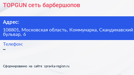 TOPGUN, сеть барбершопов по адресу 108801, Московская область, Коммунарка, Скандинавский бульвар, 6 в дальнейшем Организация, размещена в следующих категориях: