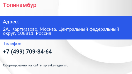 Топинамбур по адресу 2А, Картмазово, Москва, Центральный федеральный округ, 108811, Россия в дальнейшем Организация, размещена в следующих категориях: