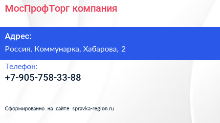 МосПрофТорг, компания по адресу Торгово-развлекательный комплекс "Новомосковский", 2, улица Хабарова, Филимонковский район, Московский, Москва, Центральный федеральный округ, 142784, Россия в дальнейшем Организация, размещена в следующих категориях: