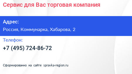 Сервис для Вас, торговая компания по адресу Торгово-развлекательный комплекс "Новомосковский", 2, улица Хабарова, Филимонковский район, Московский, Москва, Центральный федеральный округ, 142784, Россия в дальнейшем Организация, размещена в следующих категориях: