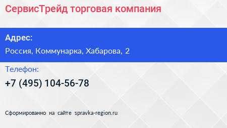 СервисТрейд, торговая компания по адресу Торгово-развлекательный комплекс "Новомосковский", 2, улица Хабарова, Филимонковский район, Московский, Москва, Центральный федеральный округ, 142784, Россия в дальнейшем Организация, размещена в следующих категориях: