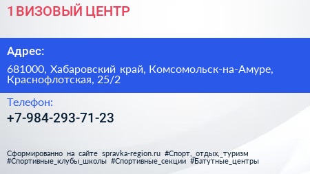 1 ВИЗОВЫЙ ЦЕНТР по адресу 681000, Хабаровский край, Комсомольск-на-Амуре, Краснофлотская, 25/2 в дальнейшем Организация, размещена в следующих категориях: