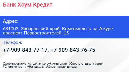Банк Хоум Кредит по адресу 681003, Хабаровский край, Комсомольск-на-Амуре, проспект Первостроителей, 15 в дальнейшем Организация, размещена в следующих категориях: