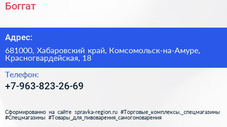Боггат по адресу 681000, Хабаровский край, Комсомольск-на-Амуре, Красногвардейская, 18 в дальнейшем Организация, размещена в следующих категориях: