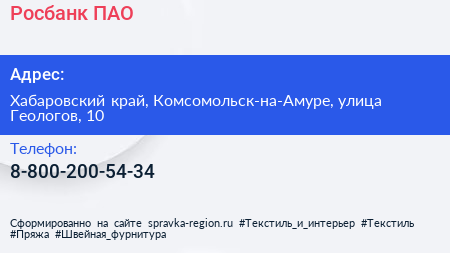 Росбанк, ПАО по адресу Хабаровский край, Комсомольск-на-Амуре, улица Геологов, 10 в дальнейшем Организация, размещена в следующих категориях: