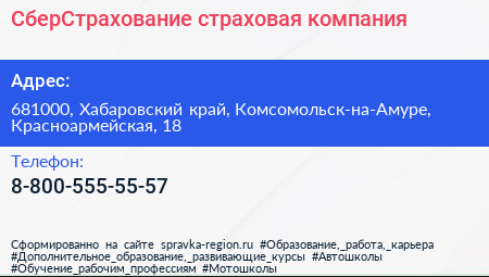 СберСтрахование, страховая компания по адресу 681000, Хабаровский край, Комсомольск-на-Амуре, Красноармейская, 18 в дальнейшем Организация, размещена в следующих категориях: