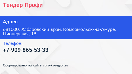 Тендер Профи по адресу 681000, Хабаровский край, Комсомольск-на-Амуре, Пионерская, 19 в дальнейшем Организация, размещена в следующих категориях: