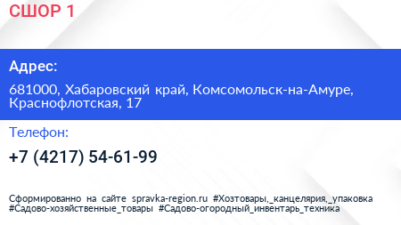 СШОР №1 по адресу 681000, Хабаровский край, Комсомольск-на-Амуре, Краснофлотская, 17 в дальнейшем Организация, размещена в следующих категориях: