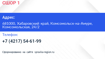 СШОР №1 по адресу 681000, Хабаровский край, Комсомольск-на-Амуре, Комсомольская, 24/2 в дальнейшем Организация, размещена в следующих категориях: