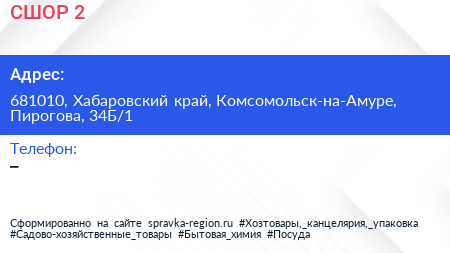 СШОР №2 по адресу 681010, Хабаровский край, Комсомольск-на-Амуре, Пирогова, 34Б/1 в дальнейшем Организация, размещена в следующих категориях: