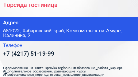 Торсида, гостиница по адресу 681022, Хабаровский край, Комсомольск-на-Амуре, Калинина, 9 в дальнейшем Организация, размещена в следующих категориях:
