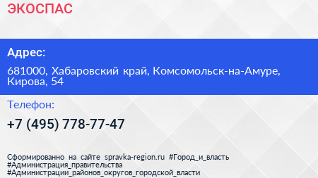 ЭКОСПАС по адресу 681000, Хабаровский край, Комсомольск-на-Амуре, Кирова, 54 в дальнейшем Организация, размещена в следующих категориях: