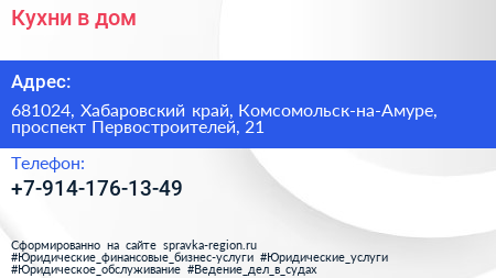 Кухни в дом по адресу 681024, Хабаровский край, Комсомольск-на-Амуре, проспект Первостроителей, 21 в дальнейшем Организация, размещена в следующих категориях: