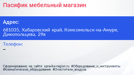 Пасифик, мебельный магазин по адресу 681035, Хабаровский край, Комсомольск-на-Амуре, Дикопольцева, 29в в дальнейшем Организация, размещена в следующих категориях: