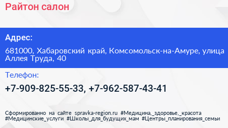 Райтон, салон по адресу 681000, Хабаровский край, Комсомольск-на-Амуре, улица Аллея Труда, 40 в дальнейшем Организация, размещена в следующих категориях: