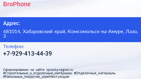 BroPhone по адресу 681014, Хабаровский край, Комсомольск-на-Амуре, Лазо, 3 в дальнейшем Организация, размещена в следующих категориях: