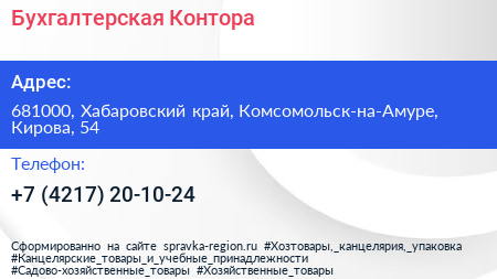 Бухгалтерская Контора по адресу 681000, Хабаровский край, Комсомольск-на-Амуре, Кирова, 54 в дальнейшем Организация, размещена в следующих категориях: